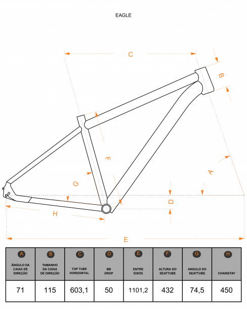 QUADRO KODE EAGLE MTB ALUMÍNIO 6061 CABEAMENTOS INTERNOS
